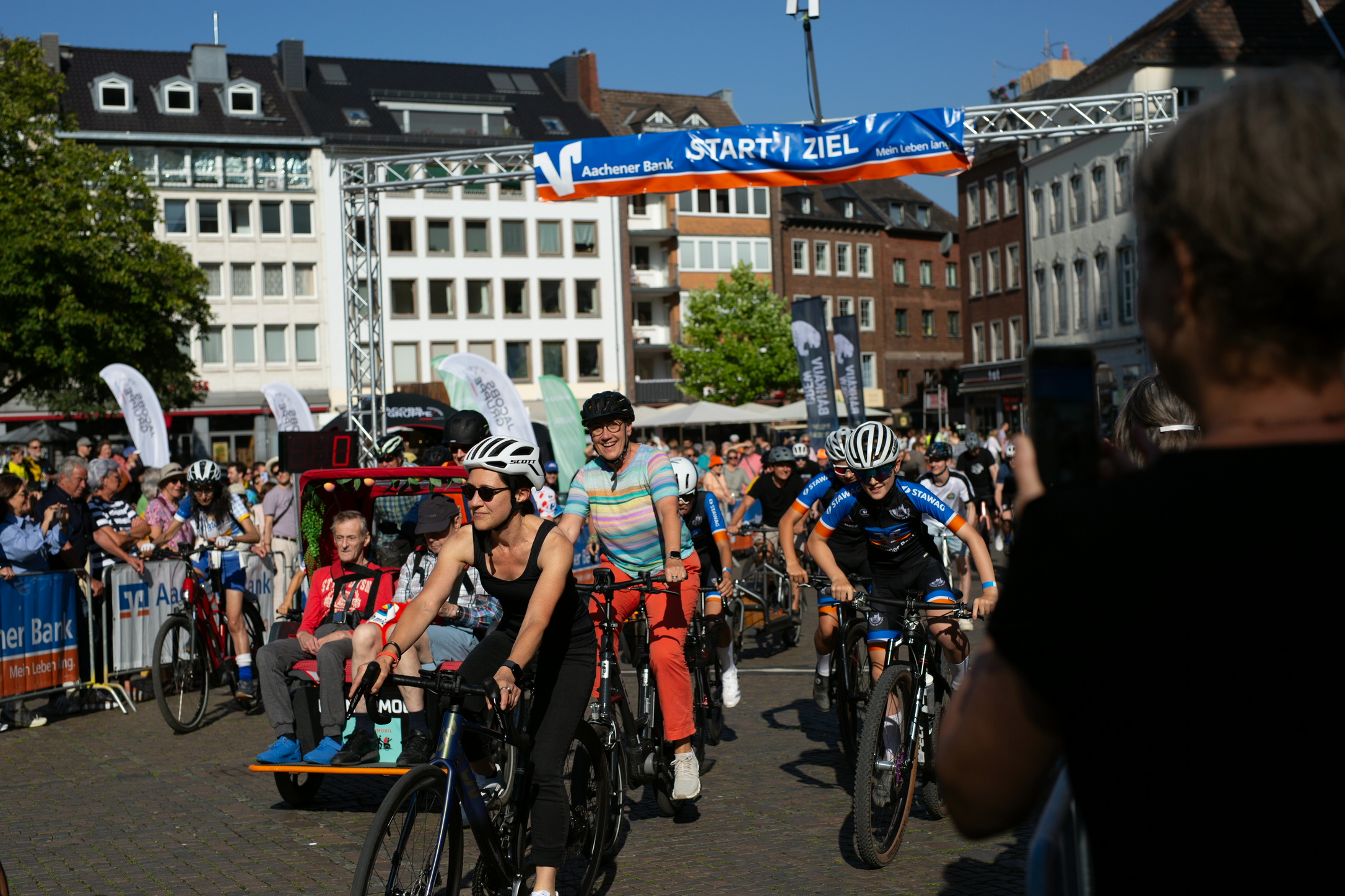 Erstmals gab es ein Jedermannrennen, wobei alle Sportler:innen ohne Lizenz –aber mit Ambitionen– fahren durften! Auch das Social Ride wurde erstmals ausgeführt und richtete sich an alle, die bei toller Atmosphäre vor historischer Kulisse Rennluft schnuppern wollen. Die Teilnahme war mit (fast) jedem verkehrstauglichem Fahrrad möglich! Lastenräder sind hiervon leider ausgenommen, aber ob motorisiert, mit Klapprad oder Gravelrad, alle anderen Räder wurden zugelassen. Wir hoffen, dass auch nächstes Jahr viele Öcher:innen mitmachen! Aachens Oberbürgermeistern Sibylle Keupen ist mitgefahren und hatte sichtbaren Spaß dabei.